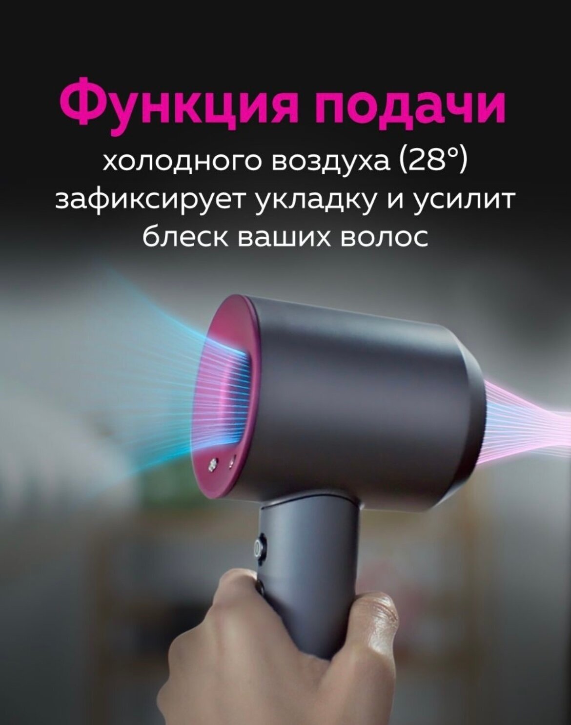 Automatic nozzle rotation, ionization, independent adjustment of heat and air flow, cold air supply