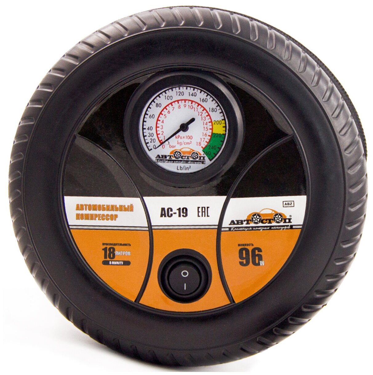 Automotive piston compressor in the form of a wheel AUTOSTOP - 96W 18l/min, 8A piston compressor, auto compressor, automobile pump, compressor for automobile tires AC-19 - 1 pc.