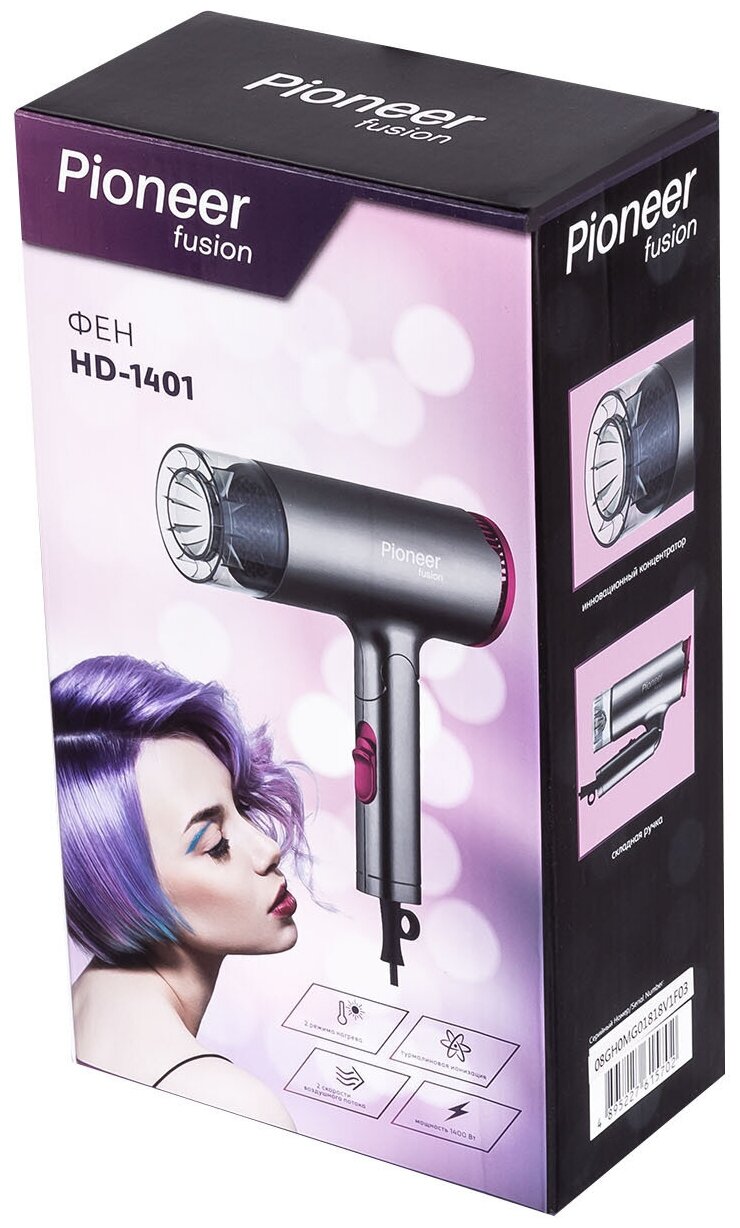 Type: hair dryer, hair dryer power: 1400 W, additional functions: ionization, cold air supply, nozzles: concentrator, number of heating modes: 2, number of speeds: 2, road, features: hanging loop, protection