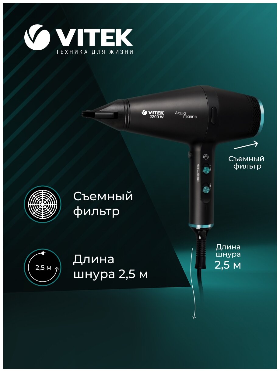 Type: hair dryer, hair dryer power: 2200 W, additional functions: ionization, cold air supply, nozzles: active diffuser, concentrator, diffuser, number of heating modes: 3, number of speeds: 2, features: protection against