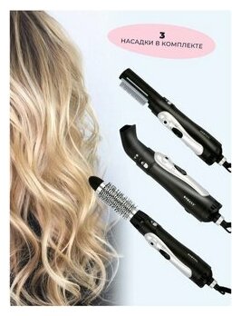 Type: hair dryer-brush, hair dryer power: 1000 W, additional functions: cold air supply, nozzles: brush, concentrator, straightening, comb, diffuser, number of heating modes: 2, number of speeds: 2, road, di