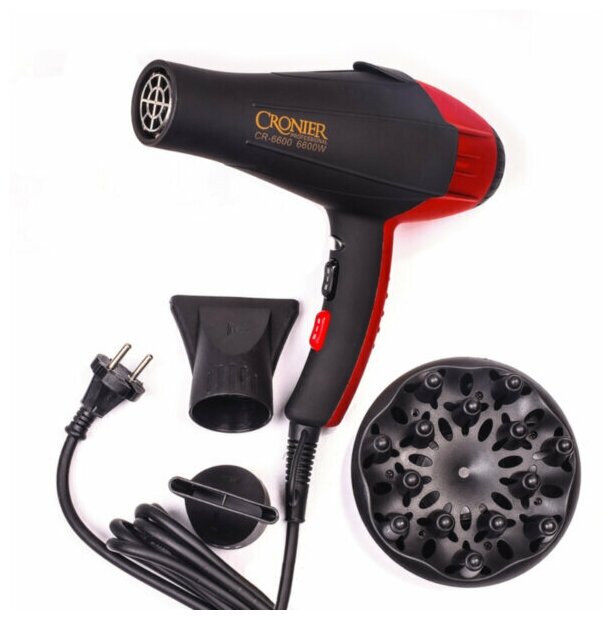 Type: hair dryer, hair dryer power: 2200 W, additional functions: ionization, independent adjustment of heating and air flow, cold air supply, attachments: diffuser, concentrator, number of heating modes: 3, quantity