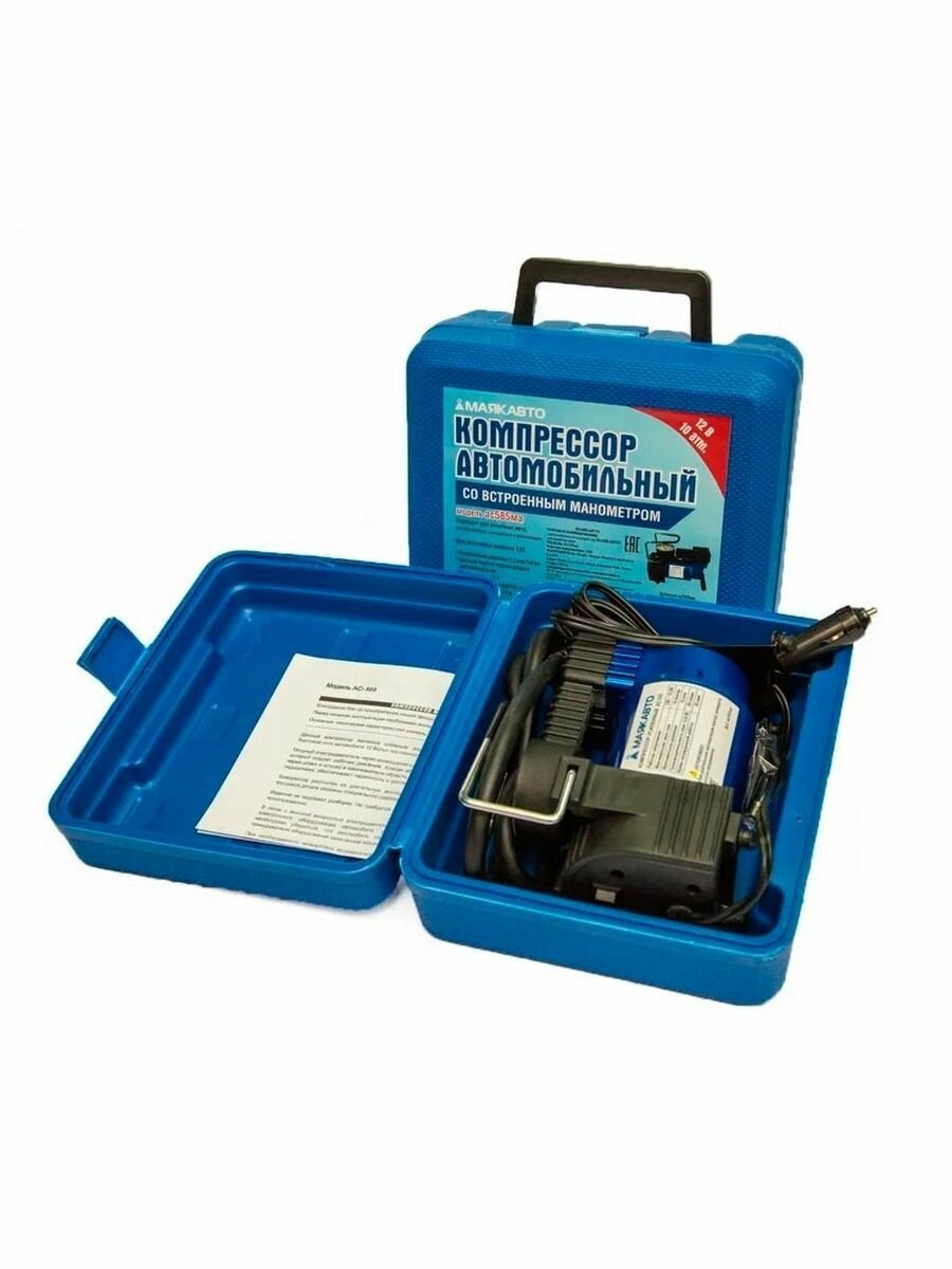 Detailed equipment: Automobile compressor ac585ma; a set of attachments for inflating: balls, mattresses, etc. - 3 pcs.; plastic case.