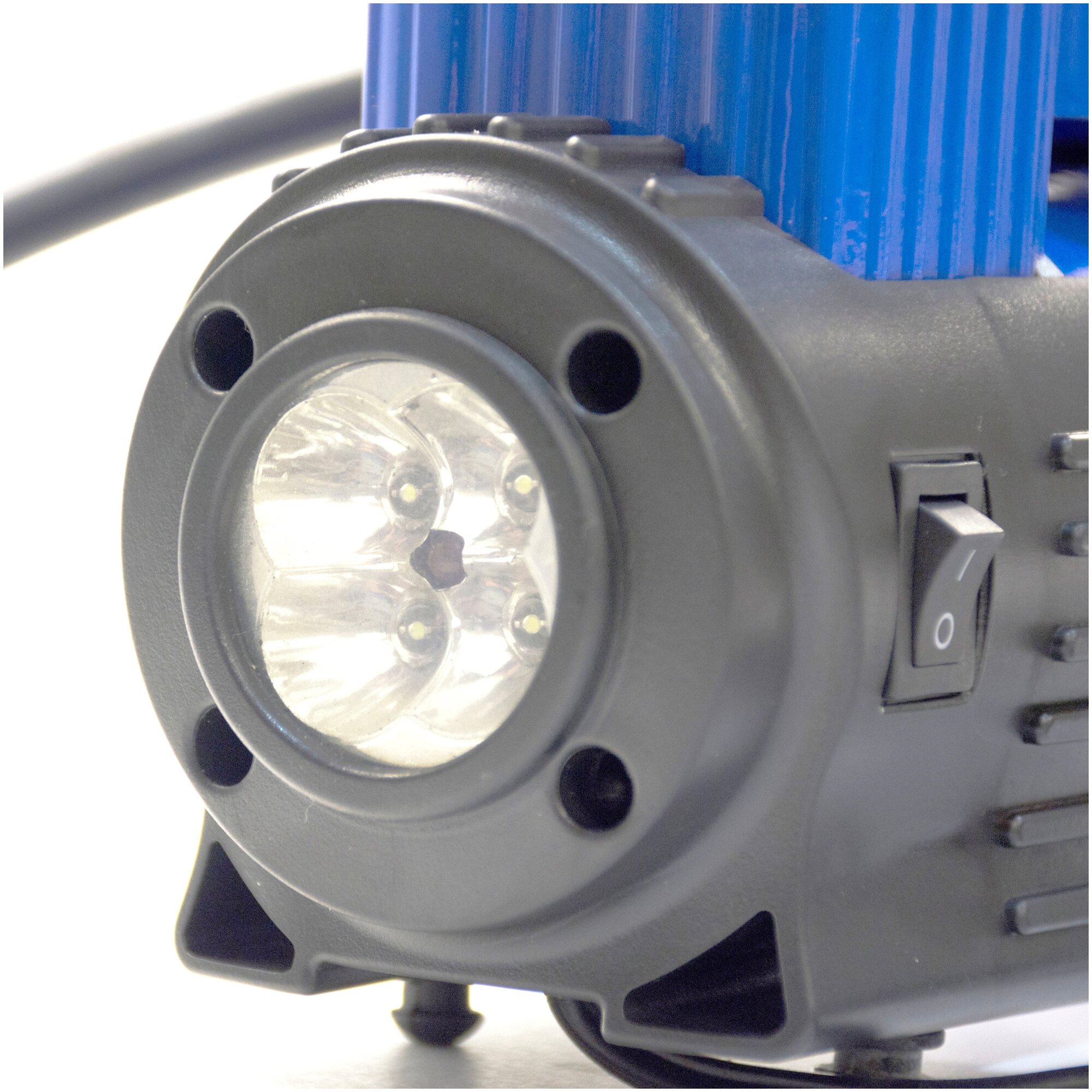 Automobile compressor ac615ma; spiral reinforced pneumatic hose; a set of attachments for inflating: balls, mattresses, etc. - 3 pcs.; plastic case.