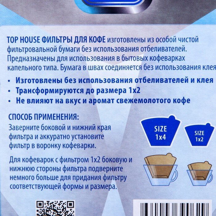 Disposable filters for drip coffee maker Top House Unbleached Size 1x4