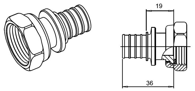 Adapter with union nut Rehau Rautitan RX+ 25 mm x G 1 13660801001 14563401001