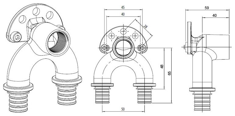Extended water outlet Rehau RAUTITAN RX - 20 x 1/2 x 20 bronze, for PEX pipes art. 11313951001 14562711001