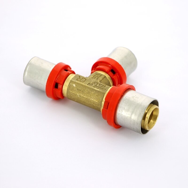 Type: tee, connection type: press, connection: press, pipe diameter: 16 mm, 20 mm, material: brass