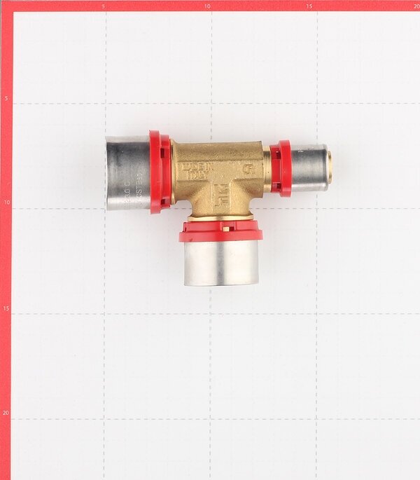 Type: tee, connection type: press, pipe diameter: 32 mm, material: brass