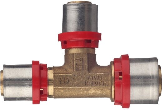 Type: tee, connection type: press, pipe diameter: 26 mm, material: brass