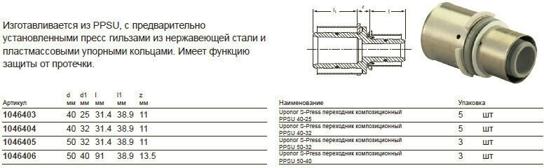 Material: PPSU, with pre-mounted stainless steel press sleeves and plastic stop rings; function: leakage protection
