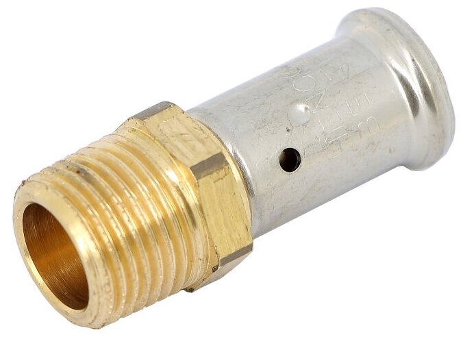 Type: coupling, connection type: press-thread, connection: male, thread diameter: ⅜, pipe diameter: 14 mm, material: brass, with seal, combined