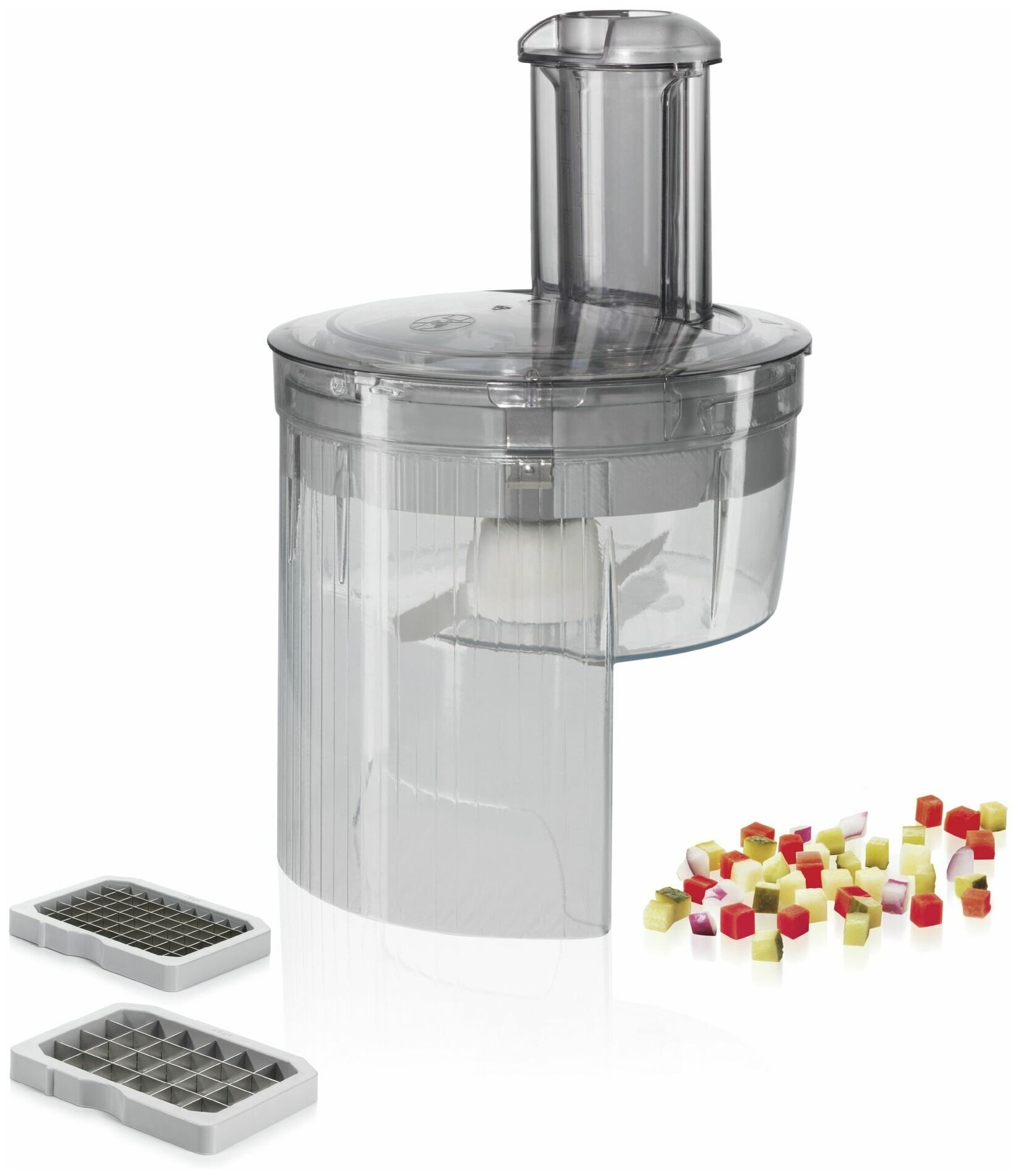 Type: nozzle, purpose: for cutting vegetables and fruits, device type: food processor, device manufacturer: Bosch, cutting type: cubes, material: metal, plastic