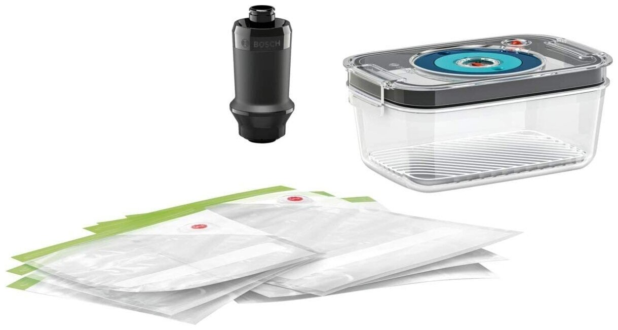 Type: storage container, nozzle, vacuum bag, purpose: storage, device type: blender, device manufacturer: Bosch, set, material: plastic
