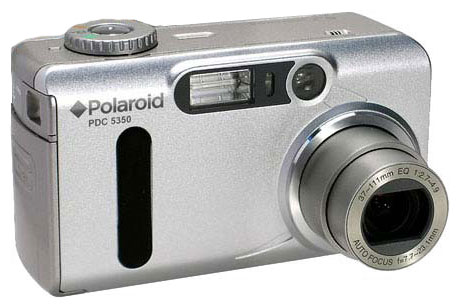 Polaroid PDC 5350 camera, Li-ion battery, AC adapter, USB cable, video cable, strap, pouch, CD-ROM with software.