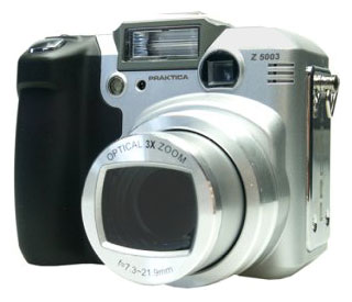 Praktica Luxmedia 5003 camera, 2 NiMH AA 2300 mAh batteries, charger, USB cable, video cable, CD-ROM with software.