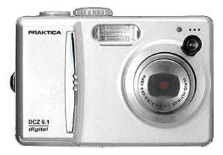 Praktica DCZ 6.1 camera, 2 Ni-MH AA 1800 mAh batteries, charger, USB cable, video cable, strap, CD-ROM with software, instructions.