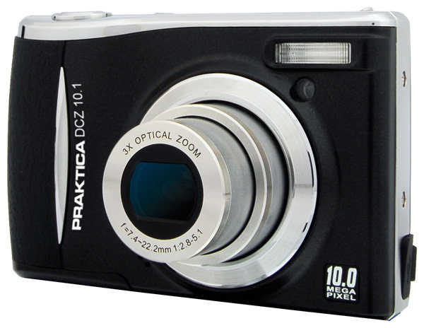 Praktica DCZ 10.1 camera, manual, USB cable, video cable, software CD, strap, bag, 2 x AA batteries