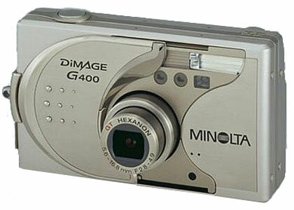 Minolta DiMAGE G400 camera, strap, USB cable, 16 MB Secure Digital memory card, BP-600 Li-ion battery, BC-600U charger, CD-ROM with DiMAGE Viewer software.