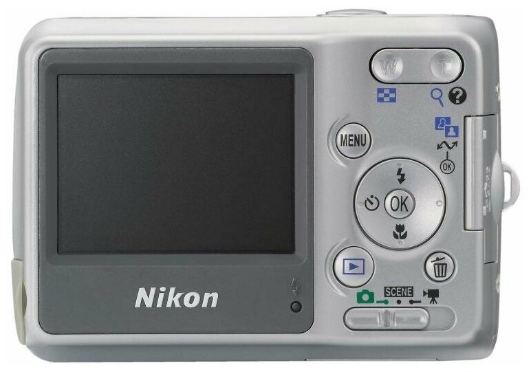 Nikon Coolpix L4 camera, 2 AA batteries, USB cable, video cable, strap, CD-ROM with software, manual