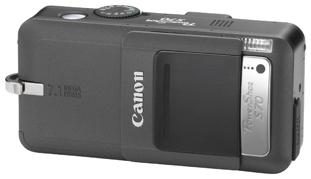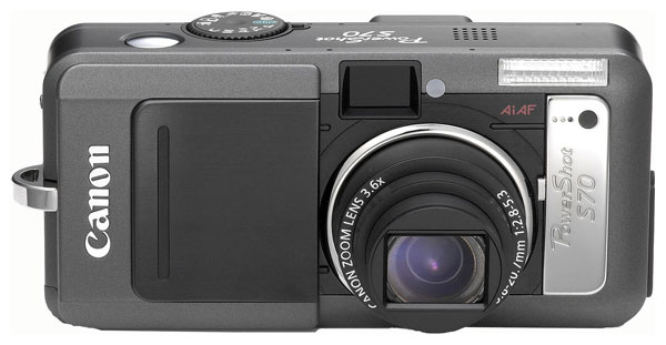 Canon PowerShot S70 camera, strap, NB-2LH battery pack, CB-2LTE charger, 32 MB Compact Flash card, USB cable, video cable, charger cable, manual, 2 CD-ROMs with software.