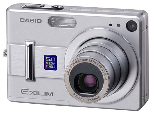 Casio Exilim EX-Z55 camera, Li-ion battery, USB cradle, USB cable, AC adapter, strap, CD-ROM with software