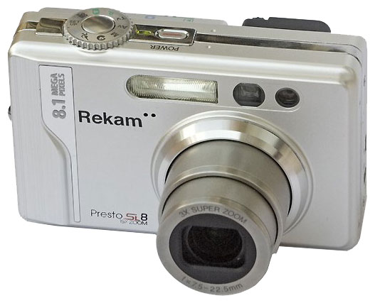 Rekam Presto SL8 camera, 64 MB SD card, Li-ion battery, USB cable, video cable, strap, bag, CD-ROM with software, instructions.