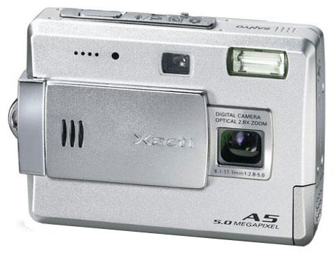 Sanyo VPC-A5 camera, Li-ion battery, charger, USB cable, video cable, 16 MB Secure Digital memory card, strap, CD-ROM with software.
