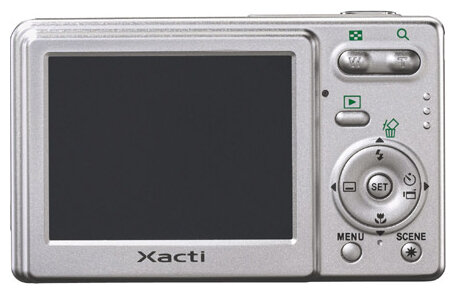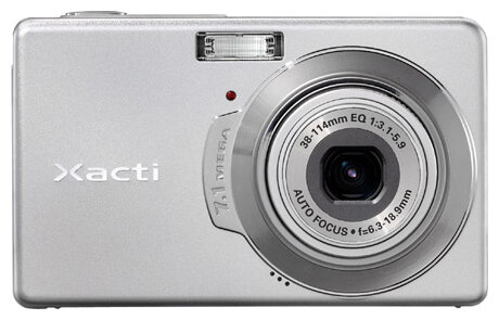 Sanyo Xacti VPC-E7 camera, strap, USB cable, AV cable, DB-L20A Li-ion battery pack, charger, software CD, manual