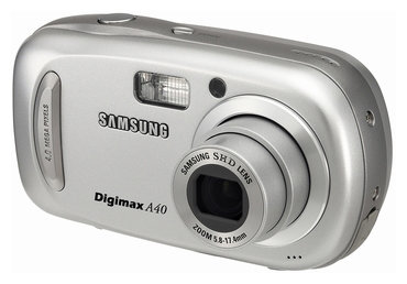 Digimax A40 camera, 2 AA batteries, USB cable, hand strap, CD with software, manual