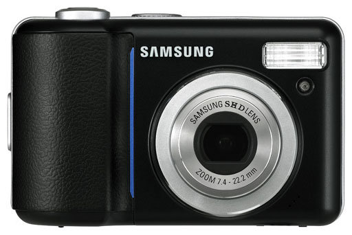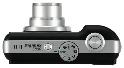 Samsung Digimax S800 camera, USB cable, AV cable, 2 alkaline batteries, strap, software CD, manual