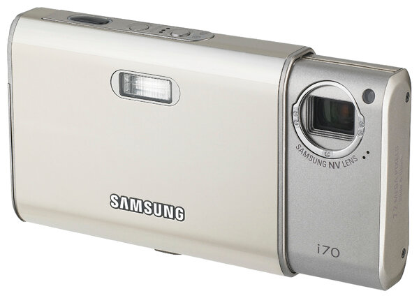 Samsung i70 camera, strap, headphones, USB cable, AV cable, AC adapter, battery, charger, software CD, manual