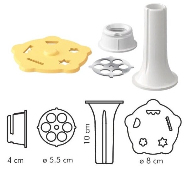 Type: nozzle, purpose: for making sausages, device type: meat grinder, device manufacturer: Tescoma, set, material: metal, plastic