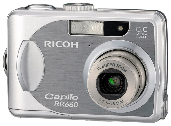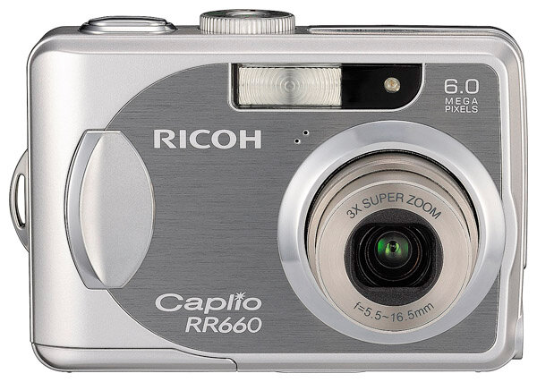 Ricoh Caplio RR660 camera, strap, case, USB cable, AV cable, batteries, software CD, manual