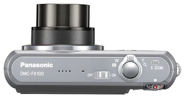 Panasonic Lumix DMC-FX100 camera, strap, USB cable, AV cable, AC cable, battery, charger, software CD, manual