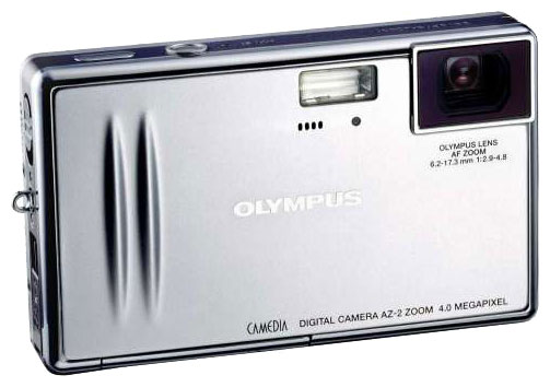 Olympus Camedia AZ-2 Zoom camera, Li-ion battery Li-20B, USB cable, video cable, 16 MB xD-Picture memory card, strap, stand, CD-ROM with software, instructions.