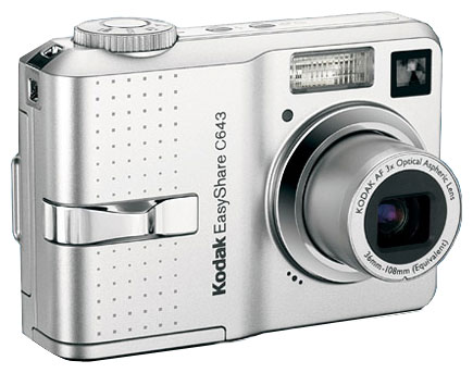 Kodak C643 camera, 2 x AA batteries, USB cable, video cable, docking station or printer insert, wrist strap, software CD-ROM, manual