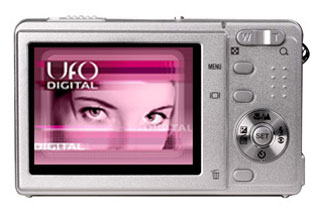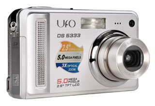 Camera UFO DS 5333, Li-ion battery, charger, USB cable, video cable, strap, case, CD-ROM with software, instructions.