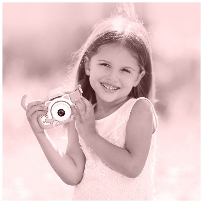 - Camera for children; - Cool convenient cover; - SD card for 32 Gb; - Wire for charging and transferring photos; - Carrying strap; - Color instruction; - Colorful box.