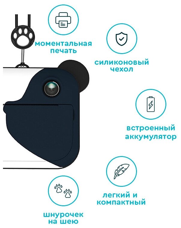 Camera, neck strap, cartridge / thermal paper, 2 pcs. 140 shots, micro SD card 16Gb, USB-micro USB cable, stickers x5 sheets, manual, warranty card