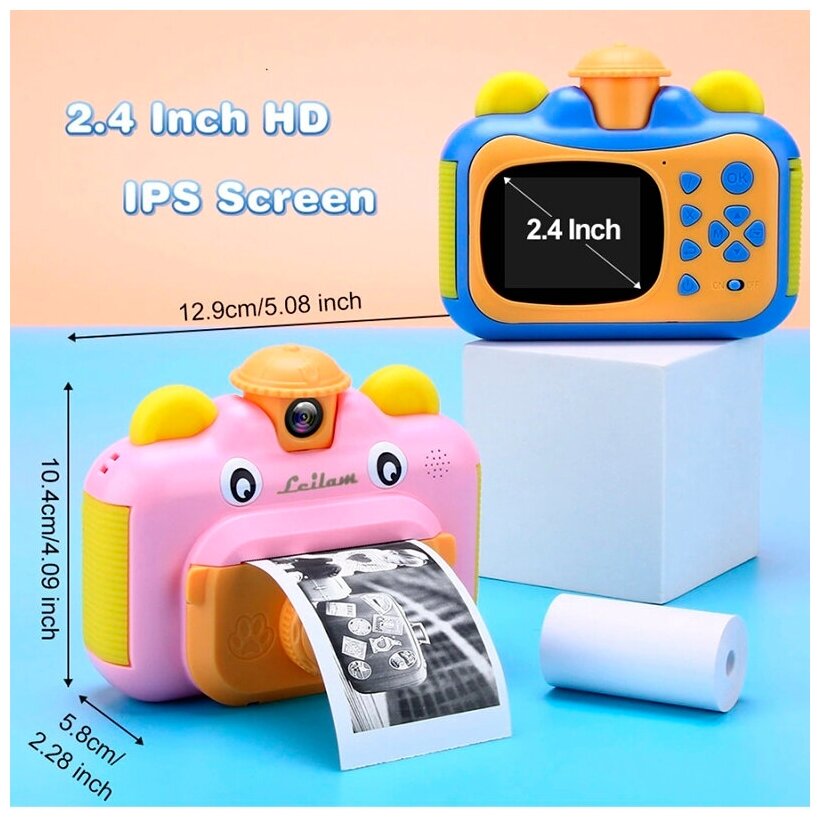 Leilam instant print camera for kids • USB cable • Instructions • Thermal paper 3 rolls • Bright stickers • Lanyard • 16 GB memory card as a GIFT!