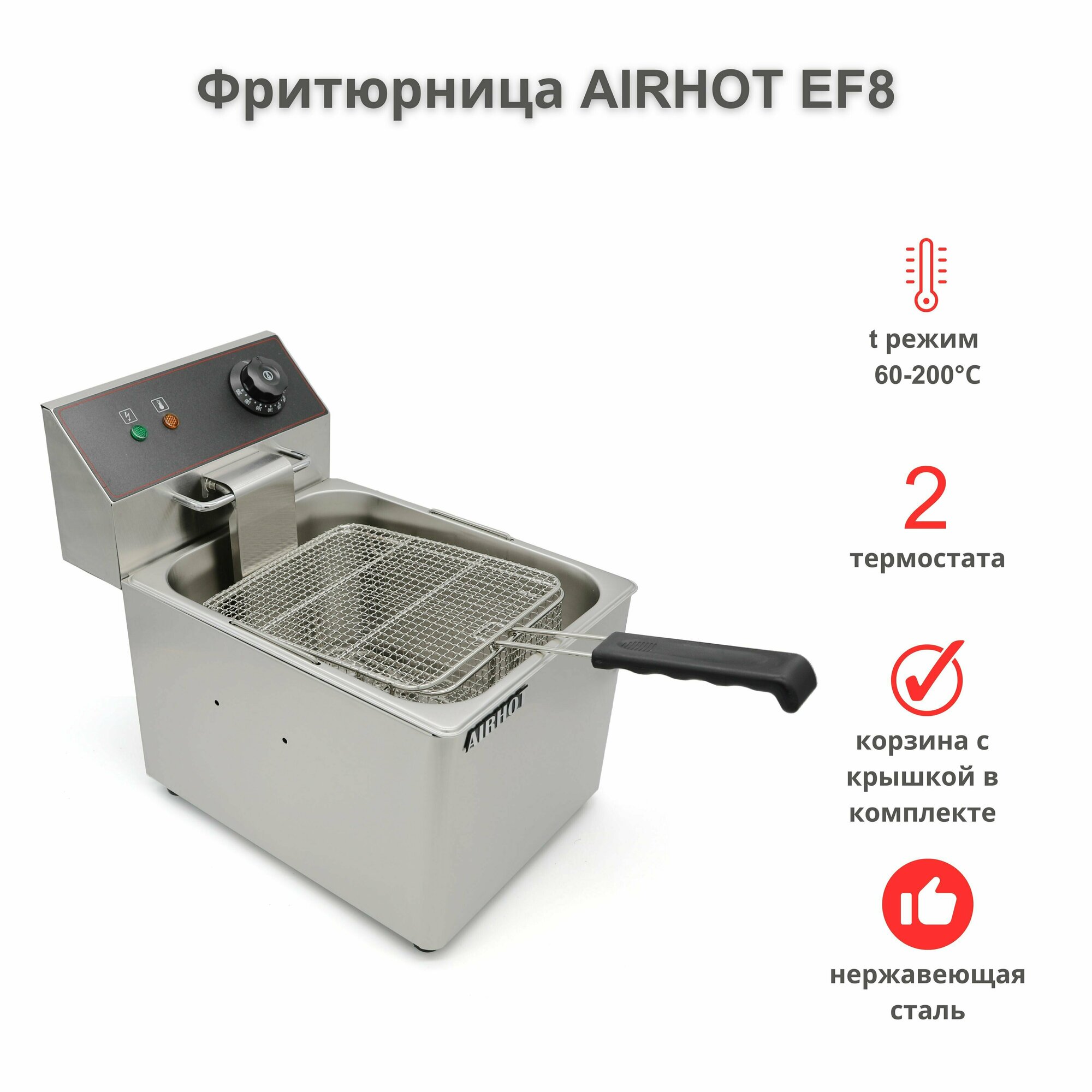 Type: fryer, container volume: 8 l, number of containers: 1, container material: stainless steel steel, maximum operating temperature: 200 °C, control: mechanical, power consumption: 3.25 kW, installation: desktop