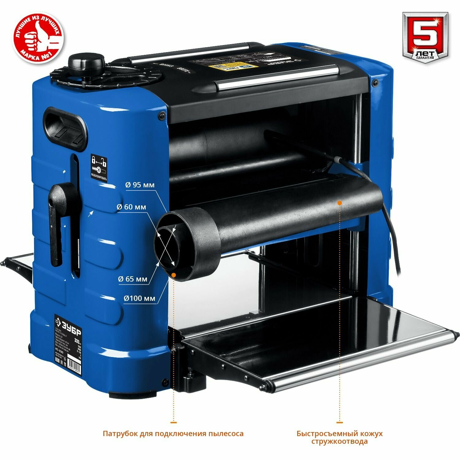 Table extension dimensions: 355x195 mm; 2 automatic feed speeds: 4 and 6 m/min; exhaust outlet diameter: 65/100 mm