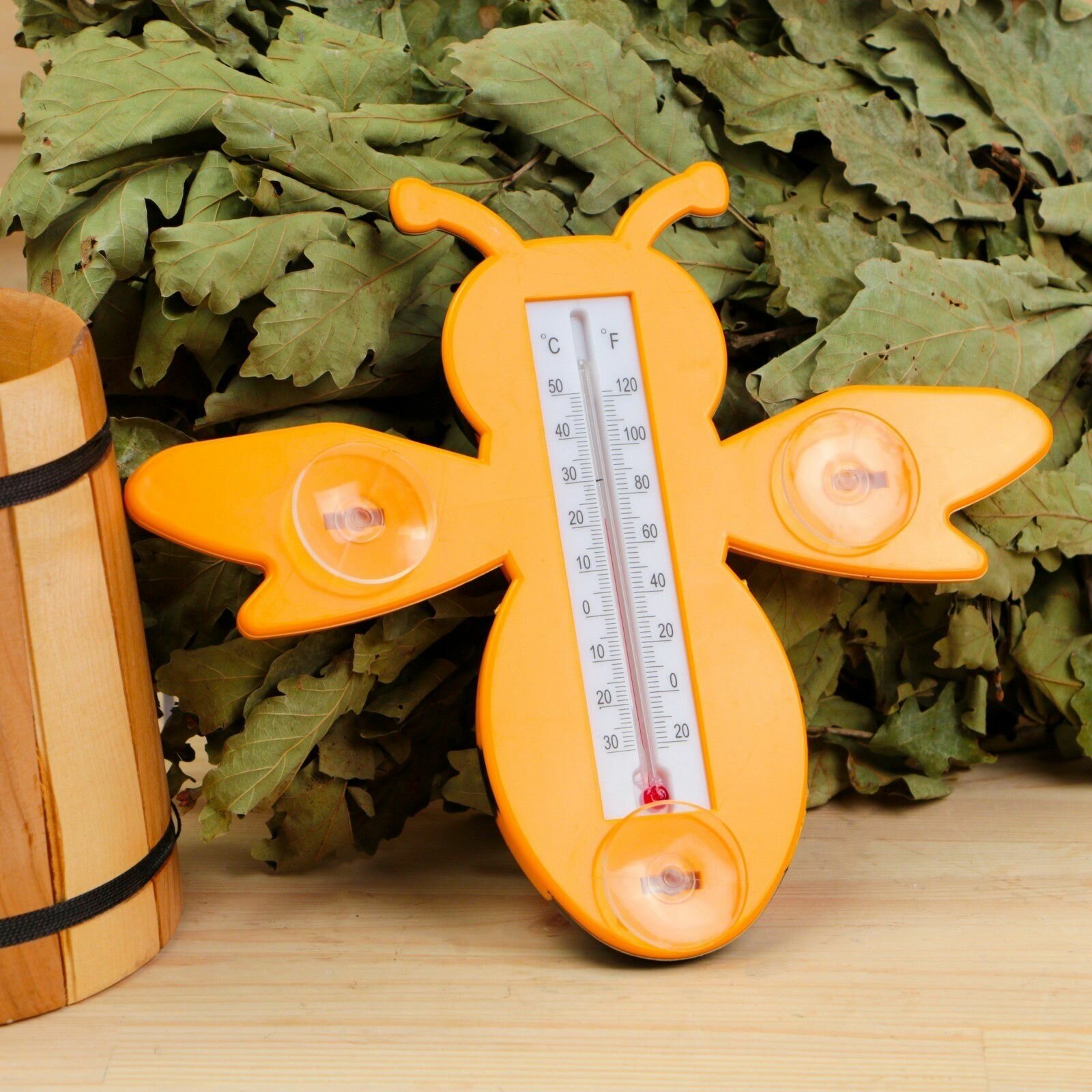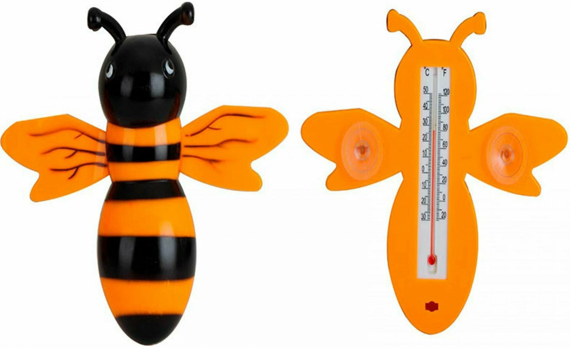 The thermometer is street on a sucker. Material: glass, plastic. Model: Bee. Size: 23.5 x 18 cm, body thickness 3.5 cm. Temperature range: +50 to -50 C.
