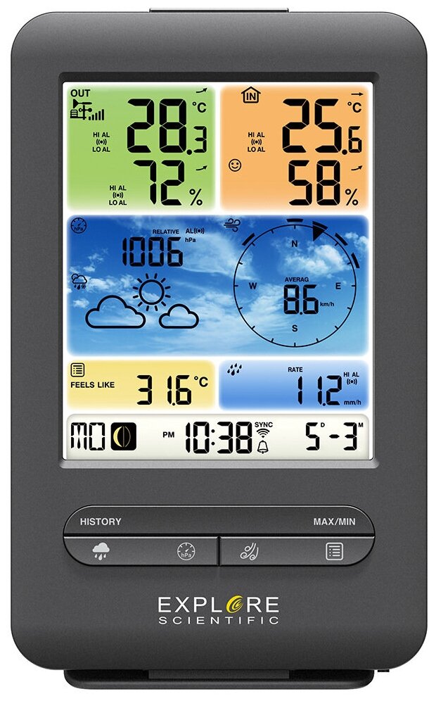 Explore Scientific 5-in-1 Wi-Fi Weather Station with Color Display, Black