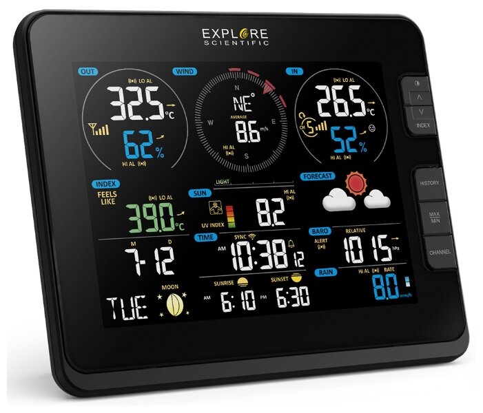 Explore Scientific 7 in 1 Wi-Fi weather station, professional, black