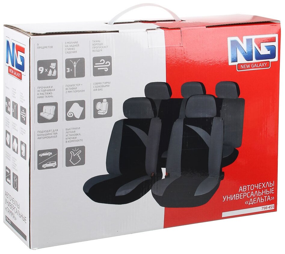 NEW GALAXY Car Chest 9 Pieces, Polyester, Delta, 3 Back Zips, Black/Grey
