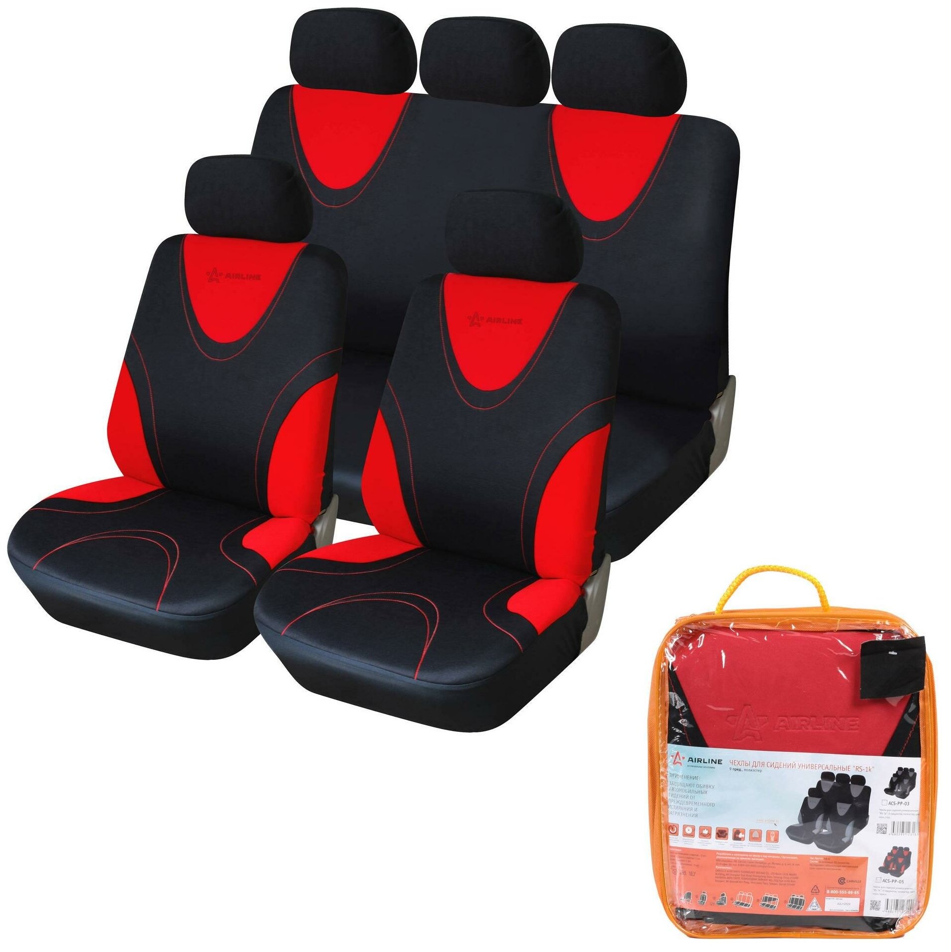 Covers for seats station wagon. RS-1k, front/rear 9 pcs, polyester, black/red