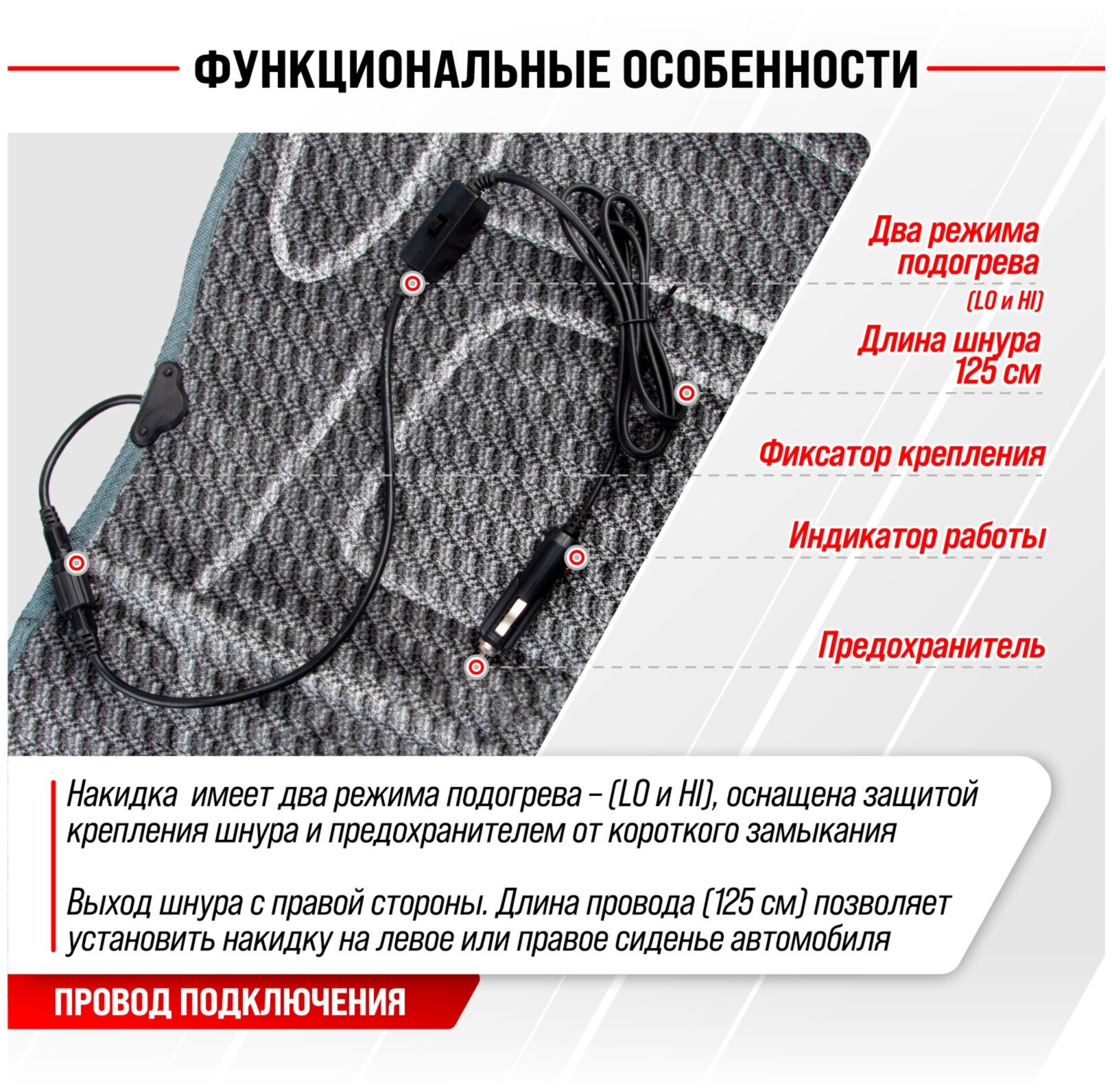 Number of thermostat modes - 2; current - 2.5A-3A; with a back; connection - to the cigarette lighter; cord - 1-right / 1-left