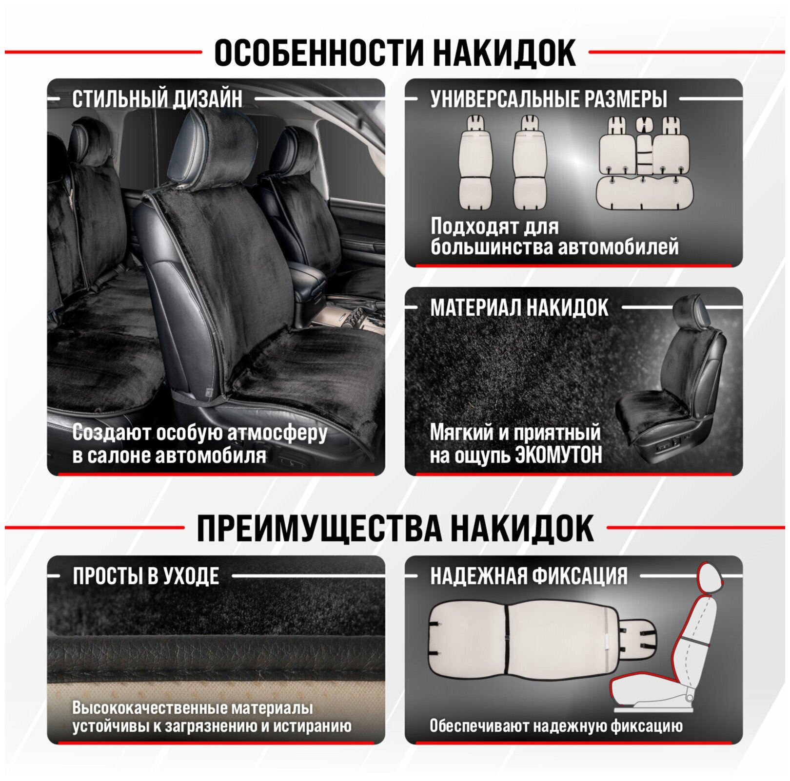 Type: cape, purpose: on the headrest, on the seat, on the back, car model: any, material: faux fur, functions: protection against dirt, number of seats: 3, seat location: rear, front, fixed